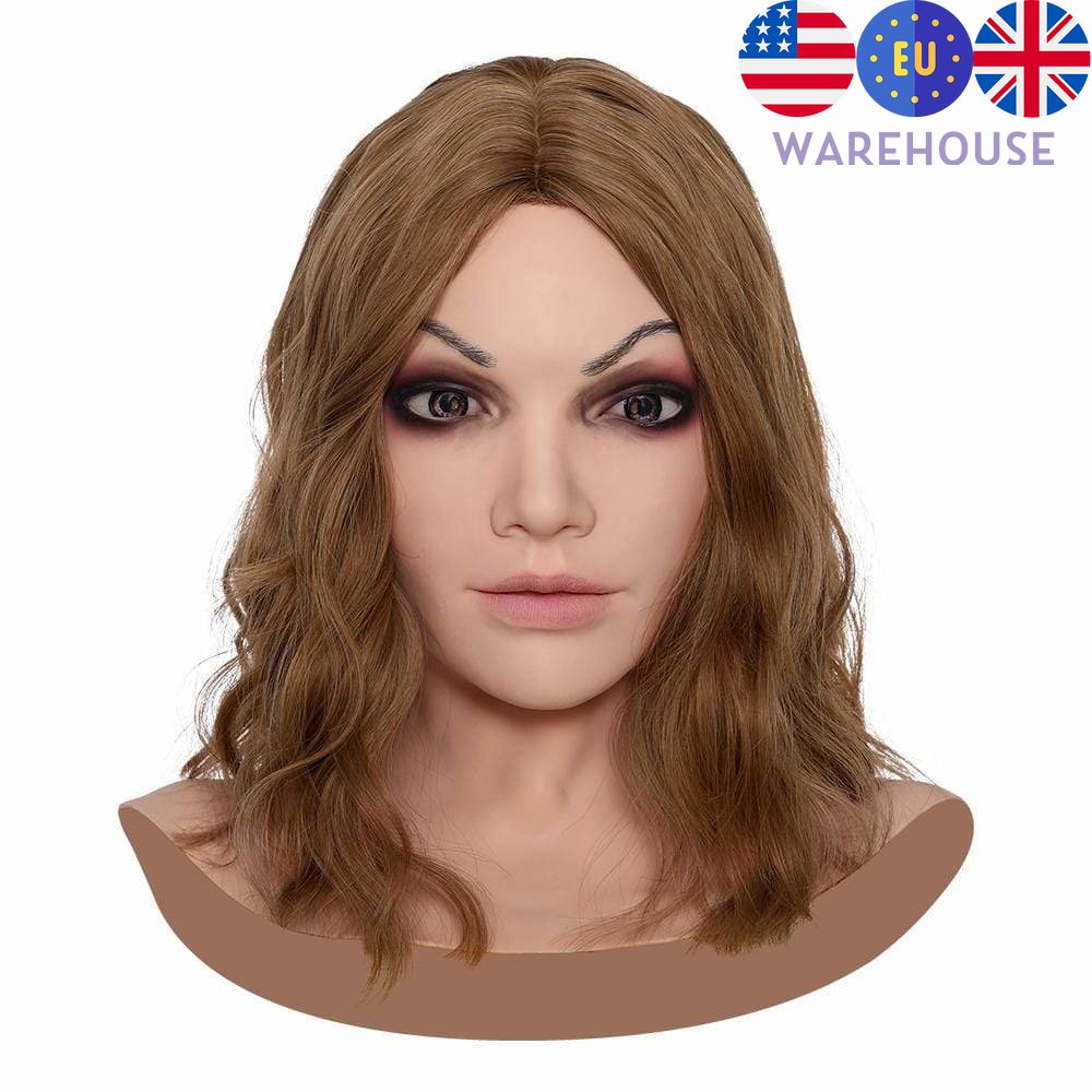 - 【人間化されたデザイン】アイホールは空で、アイホールから外を見ることができ、口を開けて話したり、食べたり飲んだりすることができます。顔には永久的な軽いメイクアップが施されており、より美しく見えます。マスクの上から直接メイクすることもでき、メイクは取り外し可能です。そして最もリアルなのは、眉毛を手動でパンチすることです。