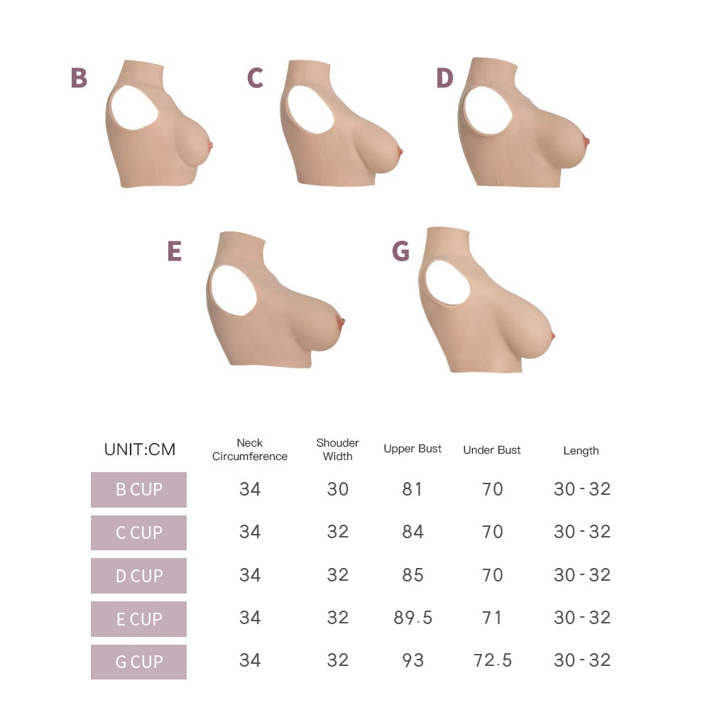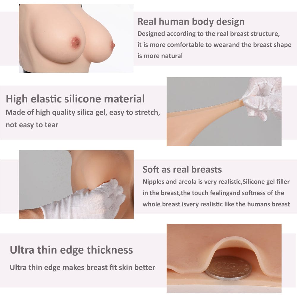 - シリコーンブレストはヨーロッパの人体の形状に合わせて設計されており、ヨーロッパ人が着用するのに適しています。肩幅を大きくし、裾を曲線的なデザインに変更することで肌にフィットし、より自然で快適な着心地を実現しました。