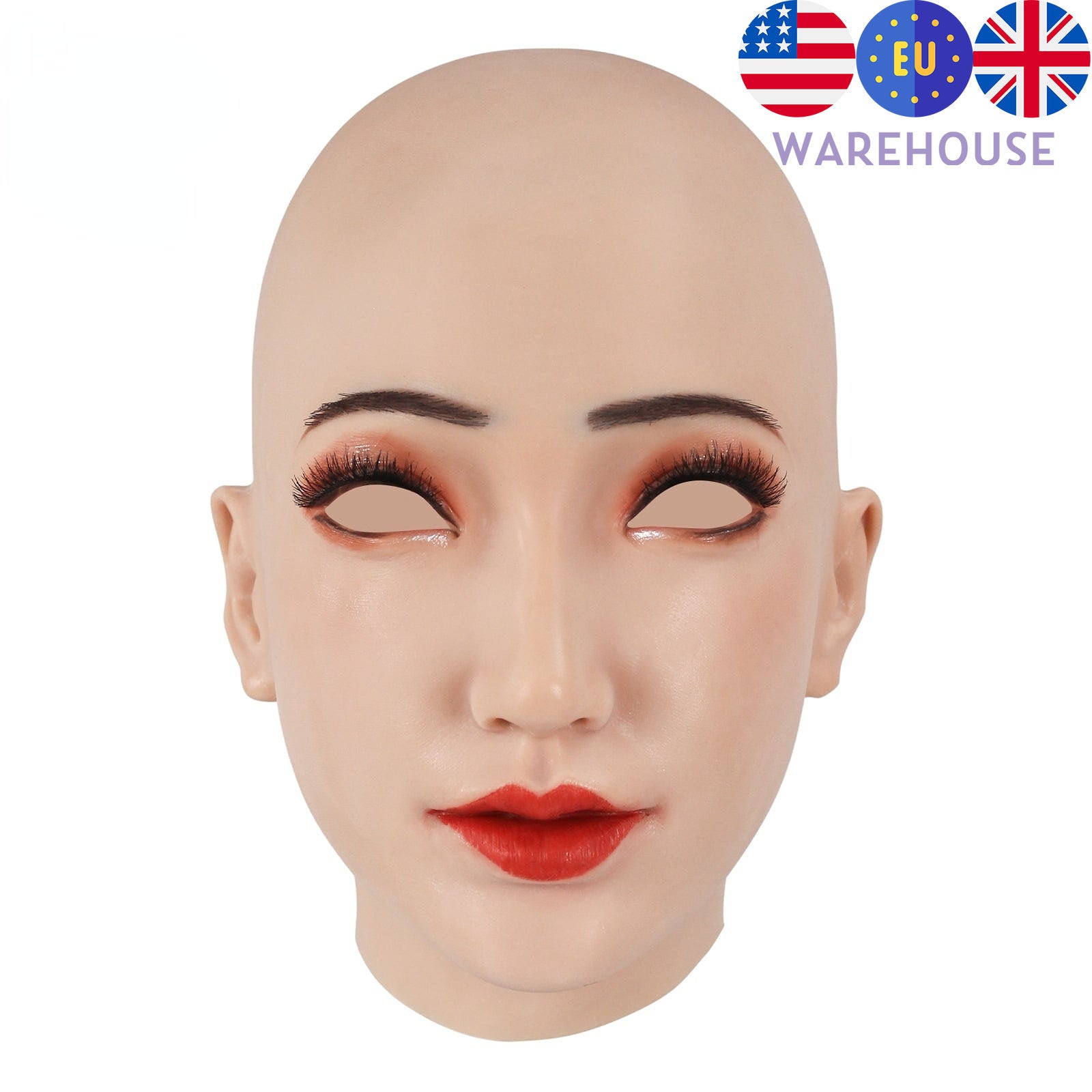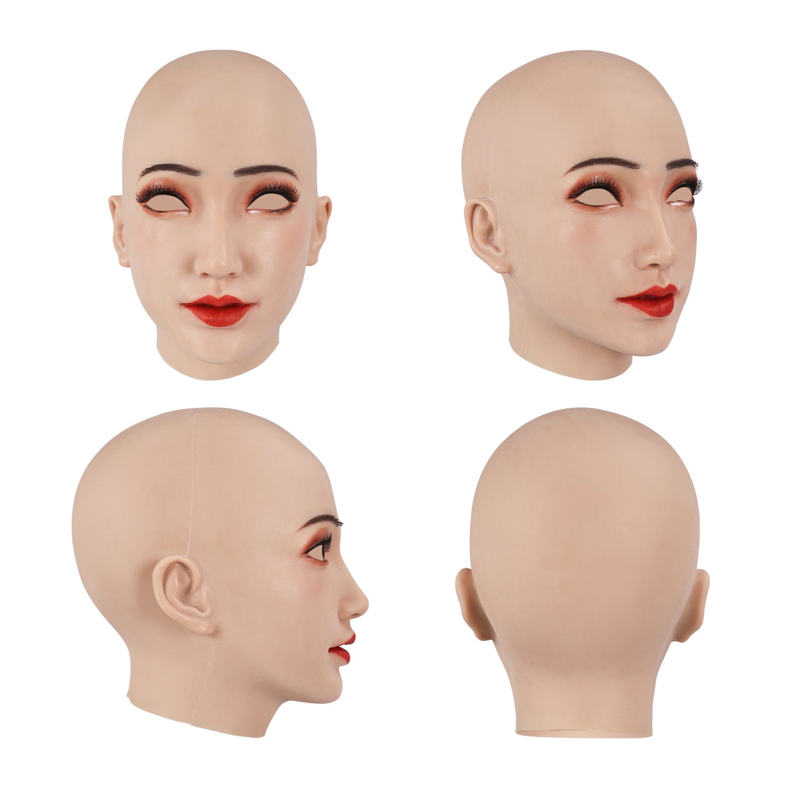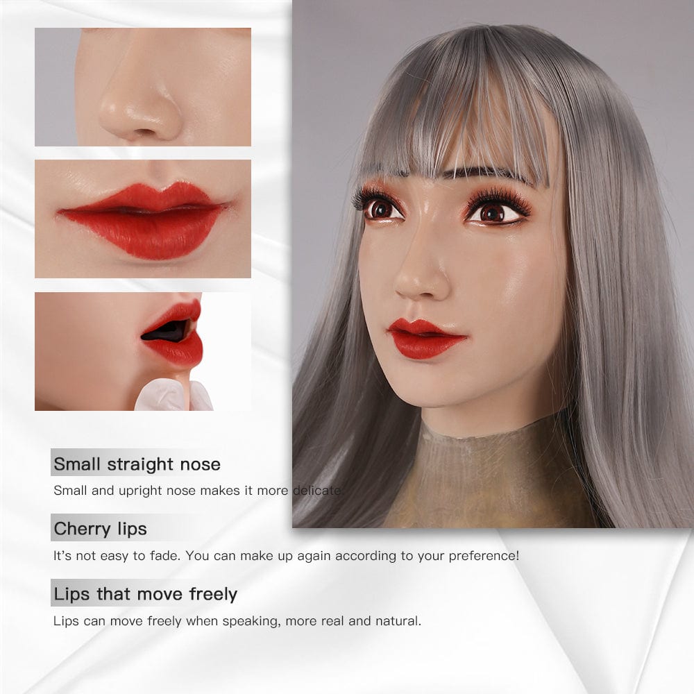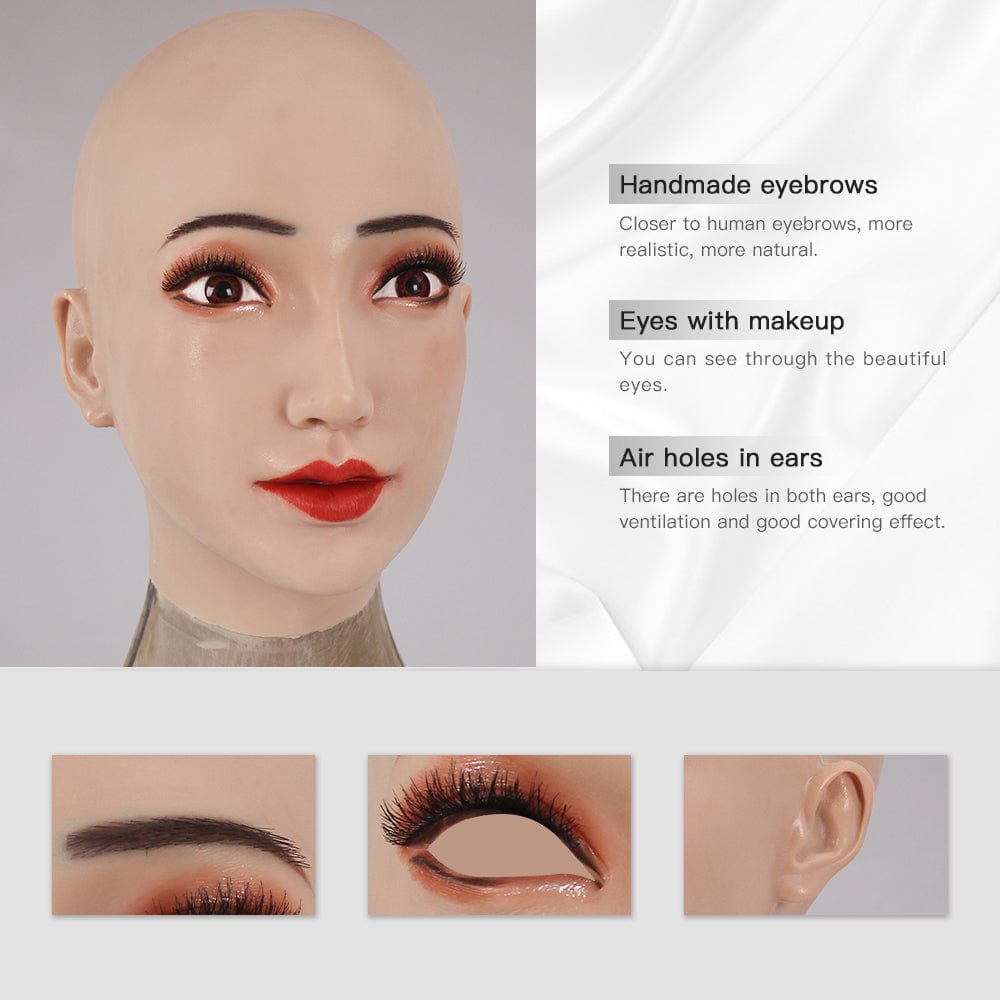 - 人間化されたデザイン:アイホールは空で、アイホールから外を見ることができ、口を開けて話したり食べたり飲んだりすることができます。顔には永久的な軽いメイクアップが施されており、より美しく見えます。マスクの上から直接メイクすることもでき、メイクは取り外し可能です。そして最もリアルなのは、眉毛を手動でパンチすることです。
