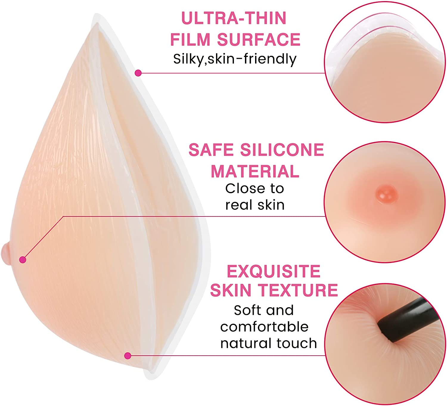I am a cross dressing man and I bought these to replace the cotton filled breasts I had. They're awesome! I love the weight and the bounce of them. I feel like a real woman wearing them. They look real and feel real to the touch, and the nipples are visible under my clothes. I've literally been wishing for a pair of breasts my whole life and now I have them.