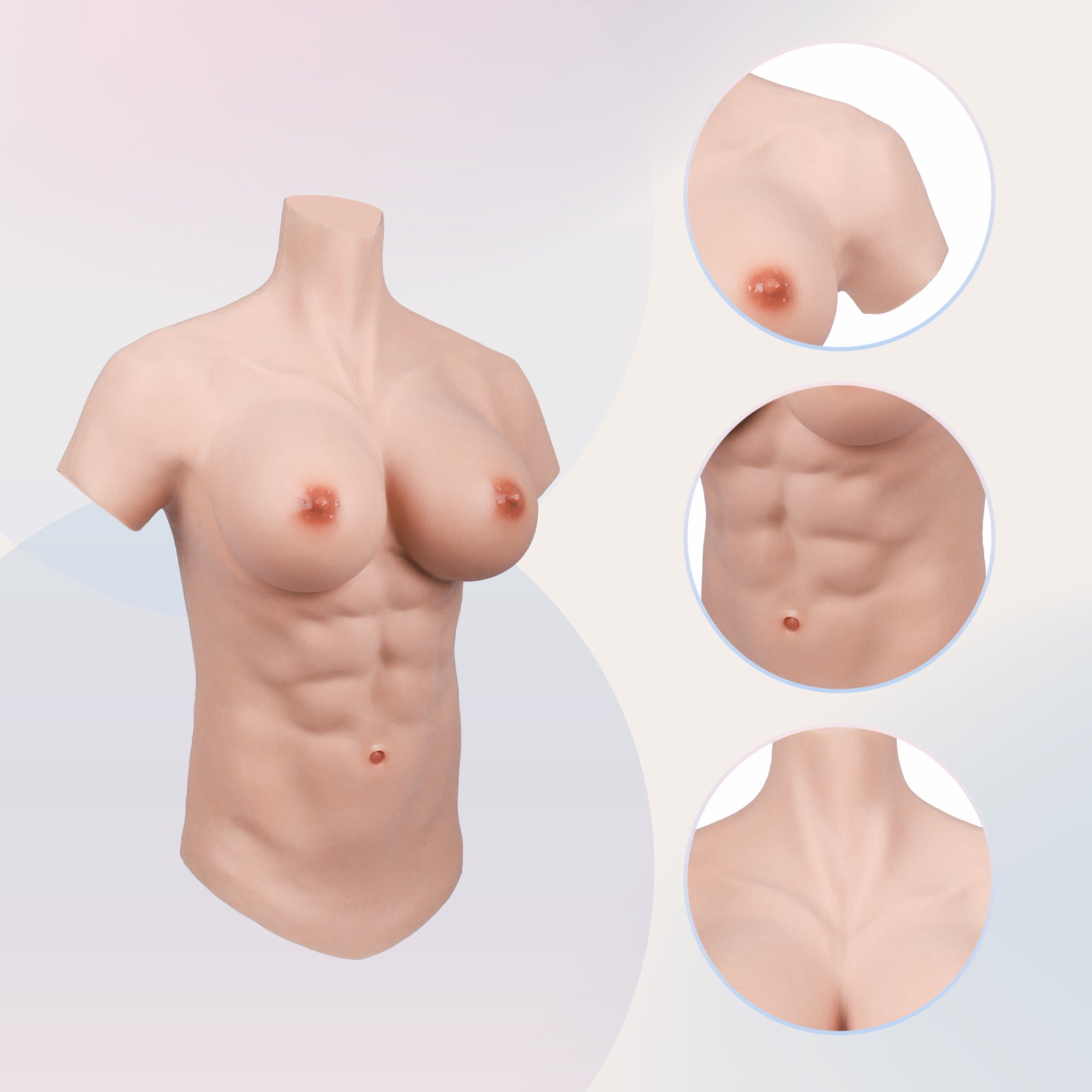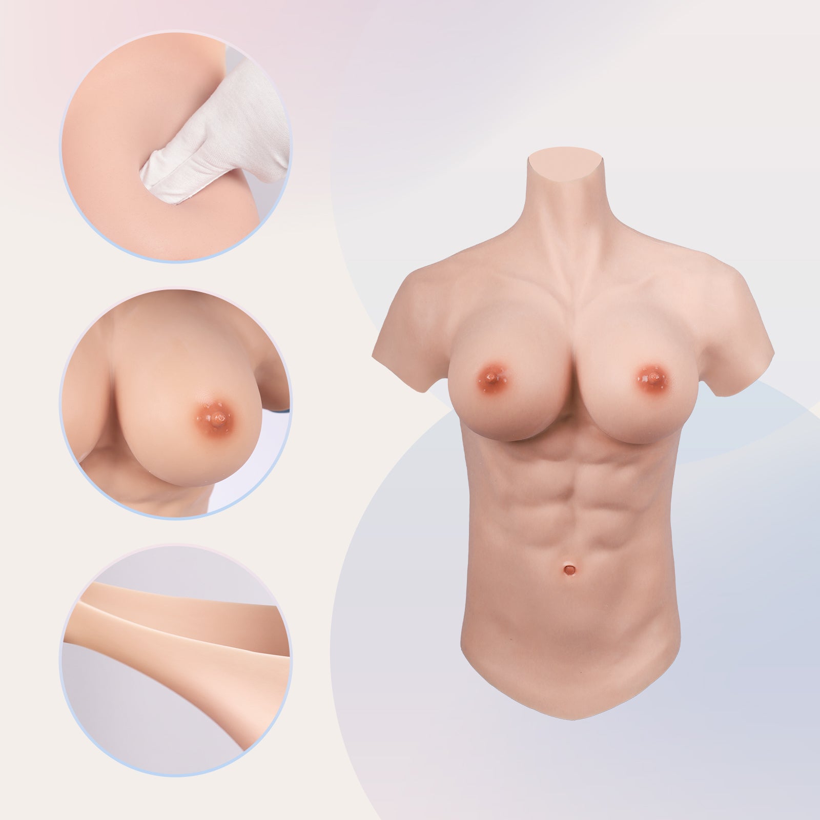 - 戦略的に配置されたシリコンテープにより、胸がはっきりと見えるように錯覚します。